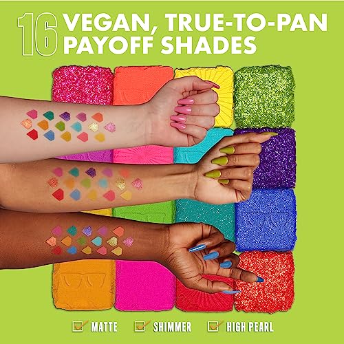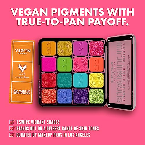 - Eyeshadow Palette: This professional level makeup palette features 16 vegan, pigmented shadows that glide onto lids and make eyes pop with color; Use with NYX Professional Makeup eyeshadow primer for bolder, longer lasting color